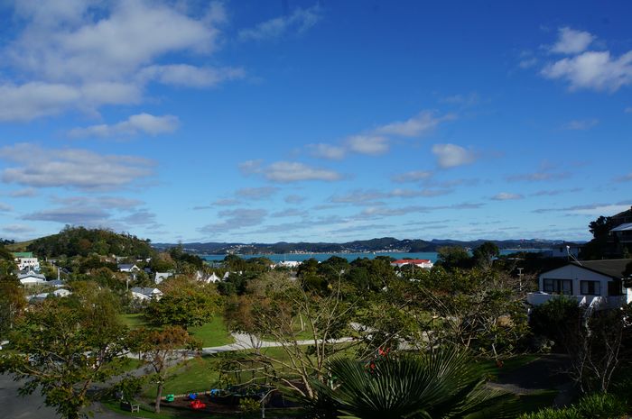Russell ist die ehemalige Hochburg des Walfangs und wurde einst „Höllenschlund des Pazifiks“ genannt (scheinbar wurde hier vor etwa 170 Jahren so richtig einer draufgemacht). Das Städtchen besticht durch seinen viktorianischen Stil. Hier scheint die Zeit stehengeblieben zu sein. Anfang des 19. Jahrhunderts war Russell die erste weiße Stadt Neuseelands und gleichzeitig als Kororareka (süßer Pinguin) Hauptstadt. Die Stadt hat eine bewegte Vergangenheit hinter sich, 1844 gab es eine Auseinandersetzung einer Gruppe von Maori und der britischen Marine. Noch heute kann man an einigen Gebäuden Einschusslöcher sehen. Wir schlenderten am Hafen entlang und genossen diese charmante Stadt. Gleichzeitig war ein Schulfest, wo wir noch das Ende des Haka-Tanzes sahen, eine Bratwurst und lecker Softeis aßen. Also wie zuhause. 😉
